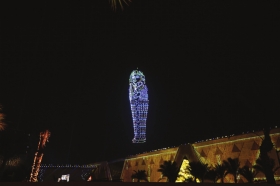 大埃及博物馆开馆仪式上的无人机表演和灯光秀。