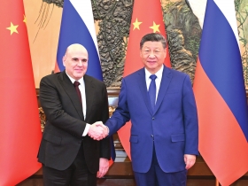 米舒斯京转达普京总统对习近平主席的亲切问候和良好祝愿。米舒斯京表示,祝贺中共二十届四中全会成功举行,相信中国一定会顺利实现“十五五”规划建议确定的目标,取得更大经济社会发展成就。两国元首今年两次会晤,对俄中关系发展作出战略规划,巩固了俄中全面战略协作伙伴关系。俄方愿同中方一道,落实两国元首达成的重要共识,深化经贸、科技、能源、农业、数字经济等领域合作,密切人文交流,加强多边协调配合,推动两国合作取得更多成果。
