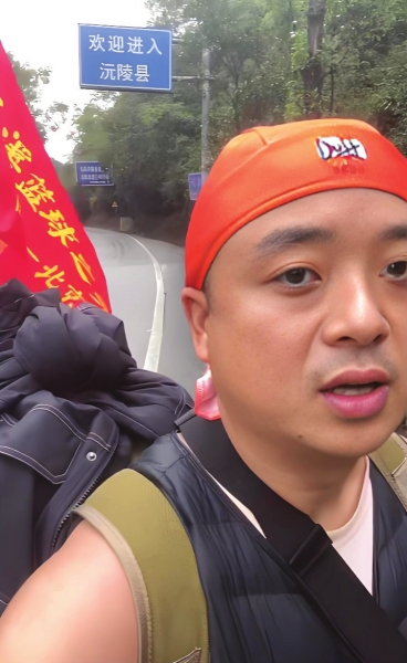 本报长沙讯 近日,怀化一名“90后”小伙发布视频称,自己正从辰溪县徒步前往北京。辰溪县距离北京1612公里,该男子决定全程步行前往这一行为引发网友关注。有人质疑其“作秀”,也有人表示支持,并称曾在路上亲眼见到他徒步前行。
