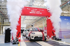 11月5日上午,伴随一台全新车型缓缓驶出广汽埃安长沙智能生态工厂生产线,由零售、制造与能源三大领域的代表企业京东、广汽集团、宁德时代联合推出的“国民好车”——埃安UTsuper1号车正式迎来下线。图/长沙发布微信公众号 A07