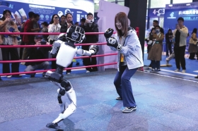 11月6日,观众在2025年世界互联网大会“互联网之光”博览会现场体验与宇树科技G1机器人“格斗”。11月6日,2025年世界互联网大会“互联网之光”博览会在浙江乌镇开幕。本次博览会以“AI共生、光启未来”为主题,以“人工智能+”为展示重点,设置了两大场馆7个主题展区,汇聚了全球600多家企业带来的1000多项人工智能前沿技术产品。图/新华社