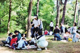 逛南郊公园像在参加游园会,走几步就有新惊喜。瞰江的Bistro餐吧、国画风的禅修茶室、草坪山顶书屋、滑草场改造而成的网球公园……成为年轻人的新兴社交场域。掩映在树林里的咖啡馆,吸引了众多市民拍照打卡。