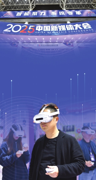 11月12日,2025中国新媒体大会在长沙开幕。 11月12日,观众在2025中国新媒体技术展上体验一款VR设备。 组图/新华社