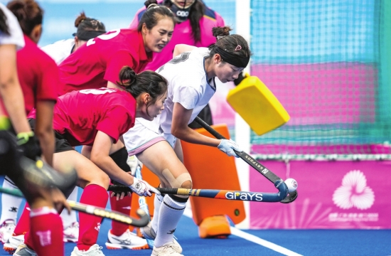 当日,在广东省云浮市举行的第十五届全国运动会曲棍球女子5-8排位赛中,辽宁队2比1战胜上海队。图/新华社