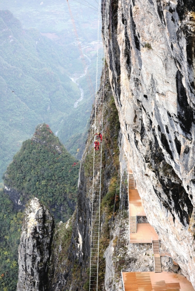 11月11日,湖南省消防救援总队2025山岳(高空)救援实战演练在张家界七星山景区举行。 图/视觉中国