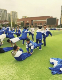 袁老师介绍,视频是11月11日一堂体育课拍摄,这些动作是第一次使用,他自己从小喜欢看军旅剧,就稍微设计了一下,组合运动包括仰卧起坐、深蹲、高抬腿、平板支撑。