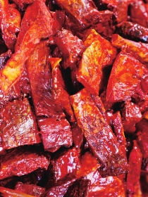 碧湘街简直是老饕的寻味地图,地道湘味挤挤挨挨。穿过上碧湘街牌坊,跟着人潮往里走,长沙糖油粑粑、糖饺、葱油粑粑的油香飘出半条街,各种肘子、扣肉咕噜噜冒着热气馋人,勇哥、浪哥、彭哥,各位“大哥”出品的凉拌捆鸡、火焙鱼、各种凉菜在陶瓷缸里码得整整齐齐,各式以“姐”命名的剁辣椒摊前双刀翻飞,辣香还没到跟前就先呛出喷嚏——湖南的火爆性子全在这案板上。