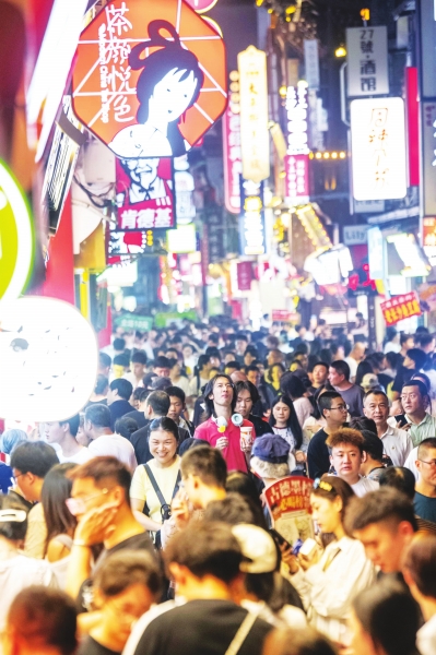 这份刻在基因里的年轻活力,使长沙成为备受年轻人青睐的旅游目的地。以解放西、黄兴广场为核心的五一商圈,常年吸引大量游客聚集。南来北往的人流在此汇聚,新鲜多元的想法在此碰撞,让长沙成为“消费活力试验场”。
