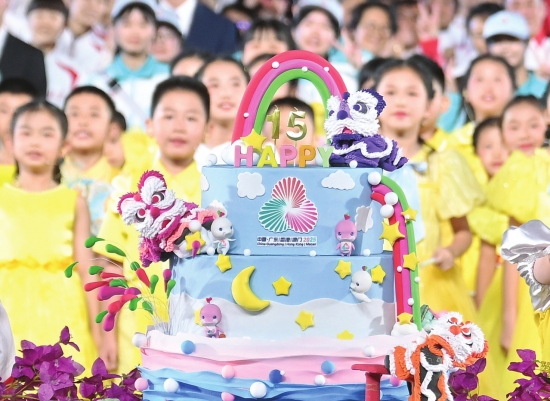 11月21日在闭幕式现场拍摄的第十五届全国运动会主题蛋糕。