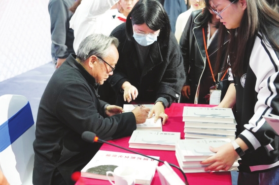 新书签售环节,读者们排起长队,期待与唐浩明先生面对面交流,不少读者手持多本作品,静静等候这一纸上的相逢。签名、握手、简短交谈,每一个瞬间都定格成这个秋日最温暖的画面。