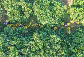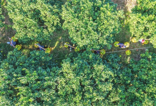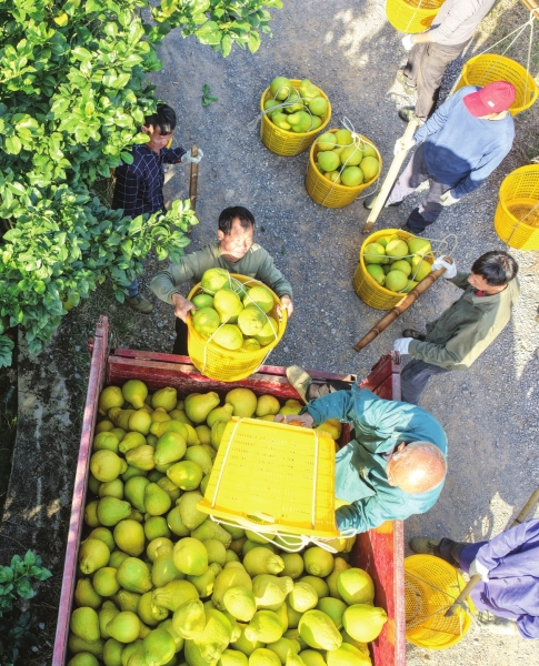 11月25日,永州市道县梅花镇赤源村三和希望生态农庄柚子种植基地,游客在体验收获柚子。近年来,道县充分挖掘本地特色资源优势,大力发展田园综合体,推进观光采摘农业和乡村旅游融合发展。组图/通讯员蒋克青