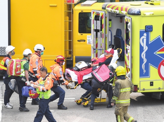 11月26日下午,香港新界大埔屋邨宏福苑多栋住宅楼发生火灾,造成重大人员伤亡。11月27日,香港特区政府消防处公布数据显示,截至22时,香港新界大埔火灾已造成75人遇难,另有76人受伤。图为11月27日救援人员从火灾现场运出伤者。 图/新华社