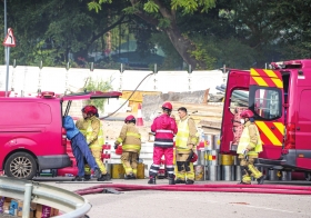 11月27日,潇湘晨报记者赶到香港火灾救援现场。香港大埔宏福苑火灾现场消防处记者会透露,宏福苑此起火情救援共出动304辆消防及救援车辆,包括98辆救护车。记者在现场附近还看到,有警方组织起火处旁边小区楼栋的居民有序返回。