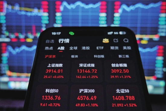 具体来看,A股三大股指盘中震荡上扬,尾盘进一步拉升。截至收盘,沪指涨0.65%报3914.01点,深证成指涨1.25%报13146.72点,创业板指涨1.31%报3092.5点,沪深北三市合计成交18896亿元。