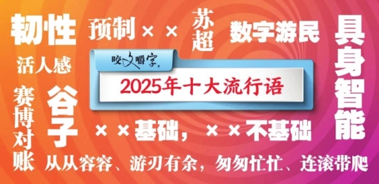《咬文嚼字》主编黄安靖表示,编辑部沿袭一贯的“双标准”原则,即坚持社会学和语言学评选标准。“韧性”位居榜首,“苏超”“赛博对账”也高票入选,这说明这一年度的大事要事、社会热点,都得到了社会的广泛关注。