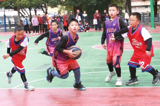 12月3日,怀化通道侗族自治县第一完全小学学生进行校园篮球班级联赛。近年来,该校积极推动体教融合,充分利用大课间、课后服务等时间,组织开展丰富多彩的校园体育运动,引导学生走出教室,在运动中愉悦身心、增强体质,促进健康成长。图/视觉中国