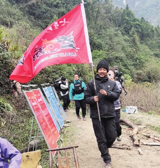 12月3日,下午4:40左右,张家界七星山“荒野求生”决赛现场出口处,突然间跑下来一个欢快的身影。他扛着“荒野求生”的旗子,步伐轻快,出其不意出现在出口处的工作人员面前。继“文车车”退赛后,“林北”也宣布退赛。