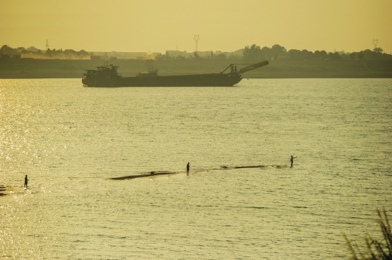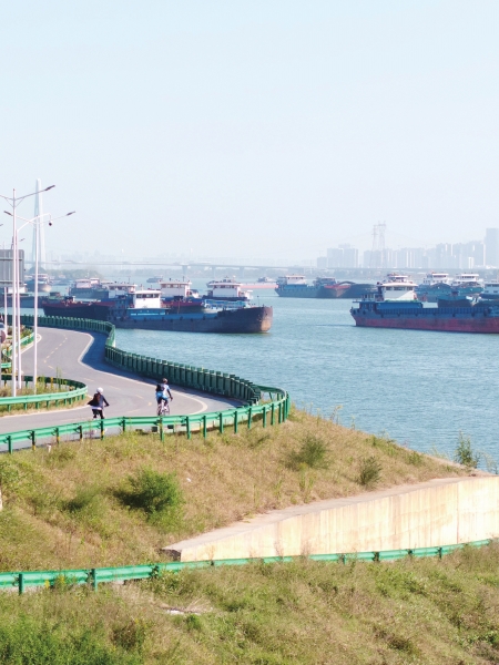 沿着老街一直往前,走到湘江边,十几辆货船正在江面等待靠岸,小镇南边就是长沙港霞凝港区。