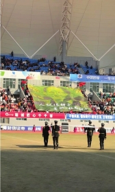 怀化队主场迎战邵阳队一役,袁隆平院士的巨幅Tifo在看台展开,也是令人难以忘怀的一幕。实际上,在湘超常规赛的第十轮,长沙队迎战益阳队一役中,这幅28m×18m的Tifo就在贺龙体育场的长沙球迷助威团看台徐徐展开,上面有袁隆平院士曾说的那句话——“人就像种子,要做一粒好种子”。