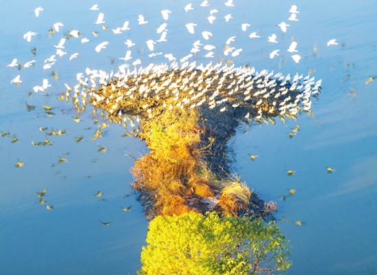 近日,群鸟在江苏兴化里下河国家湿地公园内栖息、觅食。冬日的大地,仍展露斑斓的生机,一幅幅色彩与静谧交织的画面悄然展开。图/新华社