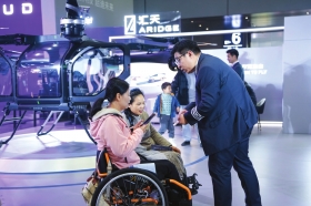 推着助力车绕飞行汽车仔细观看后,肖女士一行人高兴地排队与这辆“不一样的汽车”合影。张开双臂留影时,肖女士感慨道:“行动不便的人,往往更渴望自由飞翔。”谈到飞行汽车,她也流露出期待:“自从行动受限后,我一直有些遗憾的事没做。如今有了会飞的车,虽然可能暂时还买不起,但至少看到了希望。”