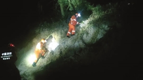 消防救援力量在20时42分与先期抵达山脚的县应急管理局工作人员会合,在当地向导的带领下,迅速赶往事发地点。进入山区,消防员发现山路崎岖难行,通讯信号更是时断时续,给救援工作带来极大挑战。“被困者里有多名儿童,体能和御寒能力相对薄弱,必须尽快找到他们!”消防员当即携带专业救援装备和补给物资,徒步进山。对被困人员可能所在区域,展开拉网式搜索。消防员们争分夺秒一边手脚并用地艰难开辟道路,一边通过呼喊、电话、灯光信号等方式全力确认被困人员具体方位。