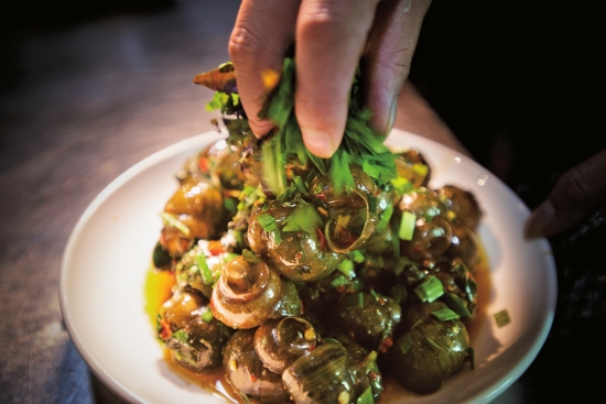 蛮多地方把田螺肉烤熟,当烤羊肉一样卖,一粒一粒,串珠般串起来,当糖葫芦一样吃。我记忆中的绝美田螺肉,是酒糟炒田螺。田螺炒熟,最好淋些酒,白酒啤酒,都行;酒能去腥,酒更能使肉松脆;白酒啤酒,都不如放糯米甜酒,带酒糟的那种,酒糟有些老的那种,田螺头是黑褐的,田螺身段是白灰的,加上红颗粒的糯米酒糟,加上青绿的葱花,紧实田螺肉,色香味形兼具,嚼起来有些韧劲,有些爽脆,有些微醺的醉意。