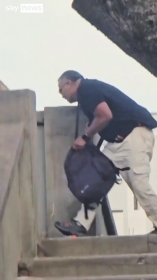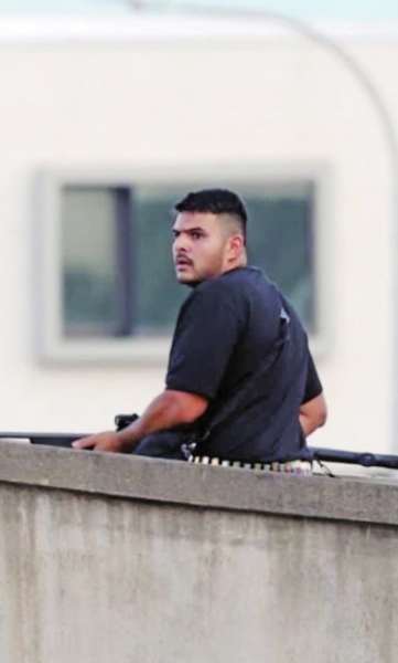 父亲萨吉德一共离开镜头3分钟,他在海滩上被英勇人士制伏缴械,随后设法回到天桥上,拿起备用步枪继续攻击。此时,父子档开始受到警方火力反击,遂蹲在天桥栏杆后方,不时探头开火。