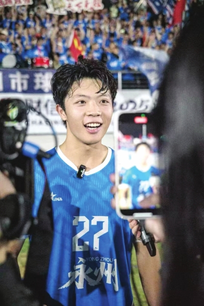 作为亲身参与其中的球员,张涛对湘超有着最直观的感受。当被要求用几个词语形容湘超时,他毫不犹豫地说出了四个词:热血沸腾、创意十足、人气爆棚、亲民接地气。