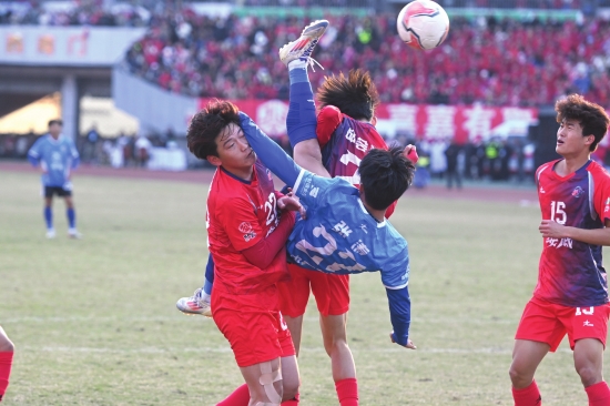 “当时我完全看不到球的运行轨迹,就凭着感觉跳起来做动作。”回忆起那粒改变比赛走势的倒挂金钩,张涛的语气里还带着一丝激动与恍惚。12月14日下午的湘超淘汰赛赛场,永州队与娄底队的比拼已进入第77分钟,局势胶着之际,永州队一记射门弹框而出,皮球飞到头顶的瞬间,张涛当即背对球门腾空跃起,身体舒展成一道优美的弧线,一记精准的倒挂金钩将足球狠狠砸入网窝。