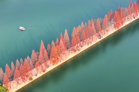 连日来,湖南烈士公园的水杉树叶转红,在冬日暖阳的映照下,园内景色如画,吸引不少市民前来游玩打卡。这是12月18日拍摄的,湖南烈士公园景色。图/新华社