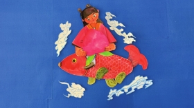 团队的21名孩子对“美”的理解各有不同,有的孩子喜欢卡通风格,有的孩子偏爱古典风格,孙瑞轩认为这种差异并非障碍,而是集体创作中的宝贵资源。起初,孩子们对帛画中古拙、奇异的神怪形象有本能的距离感。脱胎于帛画的飞廉人面鸟身,神情肃穆,孩子们都觉得它看起来有点凶,不够可爱。后来,在孙瑞轩的引导下,孩子们想到可以为飞廉设计一个卡通形象,便赋予了它蜜蜂般圆滚滚的身体和柔和俏皮的双翅,就这样,拥有了全新生命力的飞廉成了大家共同喜爱的形象之一。
