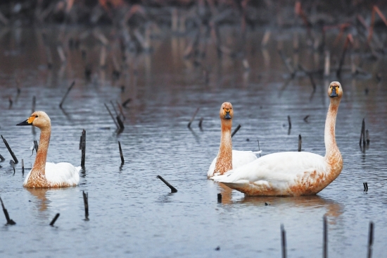 这是12月20日在东古湖拍摄的小天鹅。东古湖位于湖南省岳阳市屈原管理区,是洞庭湖生态区的重要组成部分。每年11月,大量候鸟南飞至此栖息越冬。2020年,东古湖首次监测到来此越冬的小天鹅。随着越冬候鸟种群数量的增加,东古湖成为热门观鸟目的地。 图/新华社