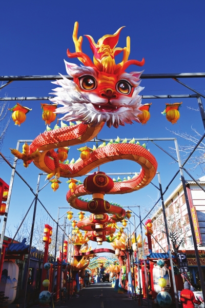 这是12月28日在敦煌夜市拍摄的特色花灯安装现场。连日来,甘肃省敦煌市抓紧制作安装彩灯,打造敦煌灯会,喜迎元旦佳节。 图/新华社