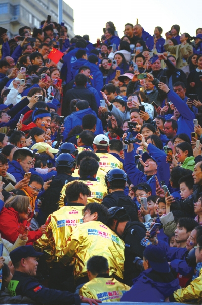 12月28日,湖南永州。湘超冠军永州队回到“野生球场”参加迎接仪式。图/记者陈正