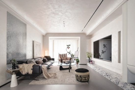 《寂影》,2025年CIID第28届中国室内设计大奖赛获奖作品。本案以黑白、米咖为基调,极简硬装与中古软装让硬朗空间富有烟火气,适当留白增加“呼吸感”,艺术涂料增强电影质感。客厅后的卧室改为多功能区,书房加入可伸缩吊轨门,关上门可作为独立办公空间,打开则与客厅形成洄游动线,增加互动性和开阔度。多处柜体、墙面及过道吊顶打造弧形造型,柔化视觉延伸空间,宛如走入艺术长廊。