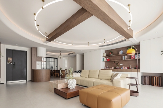 这是一对新婚夫妻的温暖爱巢。LBK一体化设计,浅色柔光大砖通铺,让空间朗阔而不疏离;灵动的圆弧吊顶和线性灯光彰显生活无尽的包容性,巧妙的木质包梁则是消弭原始缺陷,彰显别样惊喜的点睛之笔;全房从基装到定制到软装,皆以温柔暖白与古木色香交织,和谐又治愈的气息溢满空间,让温馨甜蜜的眷侣岁月自此悠然开启。