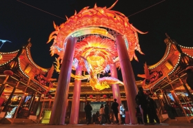 12月30日,市民游客在南京市秦淮区夫子庙大成殿景点参观各种灯彩。