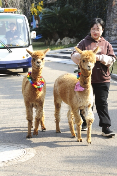 巡游队伍中的羊驼。组图/长沙生态动物园