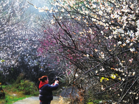 1月5日,游客在湖南省农科院梅园赏梅。近日,湖南省农科院梅园里的白梅、红梅竞相绽放,暗香浮动,为冬日的星城增添一抹温柔暖意。
