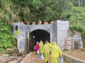 隧道口固若铜墙,洞内石壁尖锐粗糙,恍若被山神水仙啃咬过,挖通过程超级不容易。上世纪七十年代,道任村和梅岗村两边村干部碰头打商量后,推选出几十名汉子,自带铁锤钢钎和干粮,正式向岗背山这座庞然大物叫板。谁知撼山难,难于上青天摘星辰,叮叮当当敲打了7年,却如蚂蚁啃树蚯蚓钻山,挖通长度不及三分之一。