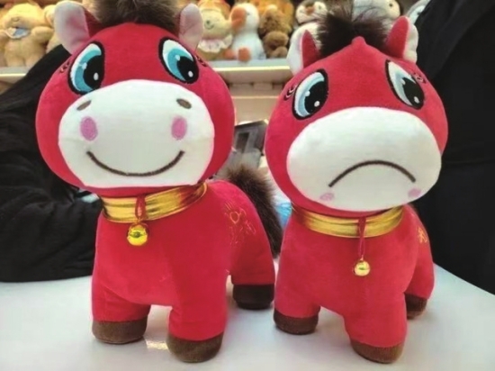 本报长沙讯 近日,义乌小商品市场一款名为“哭哭马”的马形玩偶火了,相关话题一度登上热搜第一。报道称,“哭哭马”的爆火源自一场美丽的失误。义乌市场商户张火清的企业工人在生产马年公仔“笑笑马”时,误将嘴巴缝反,原本上扬嘴角被缝成了下垂状,就诞生了表情委屈的瑕疵品。一名杭州网友晒出“哭脸小马”时,它却因其耷拉的嘴角、倔强的眼神被全网封为“职场嘴替”“解压神器”。