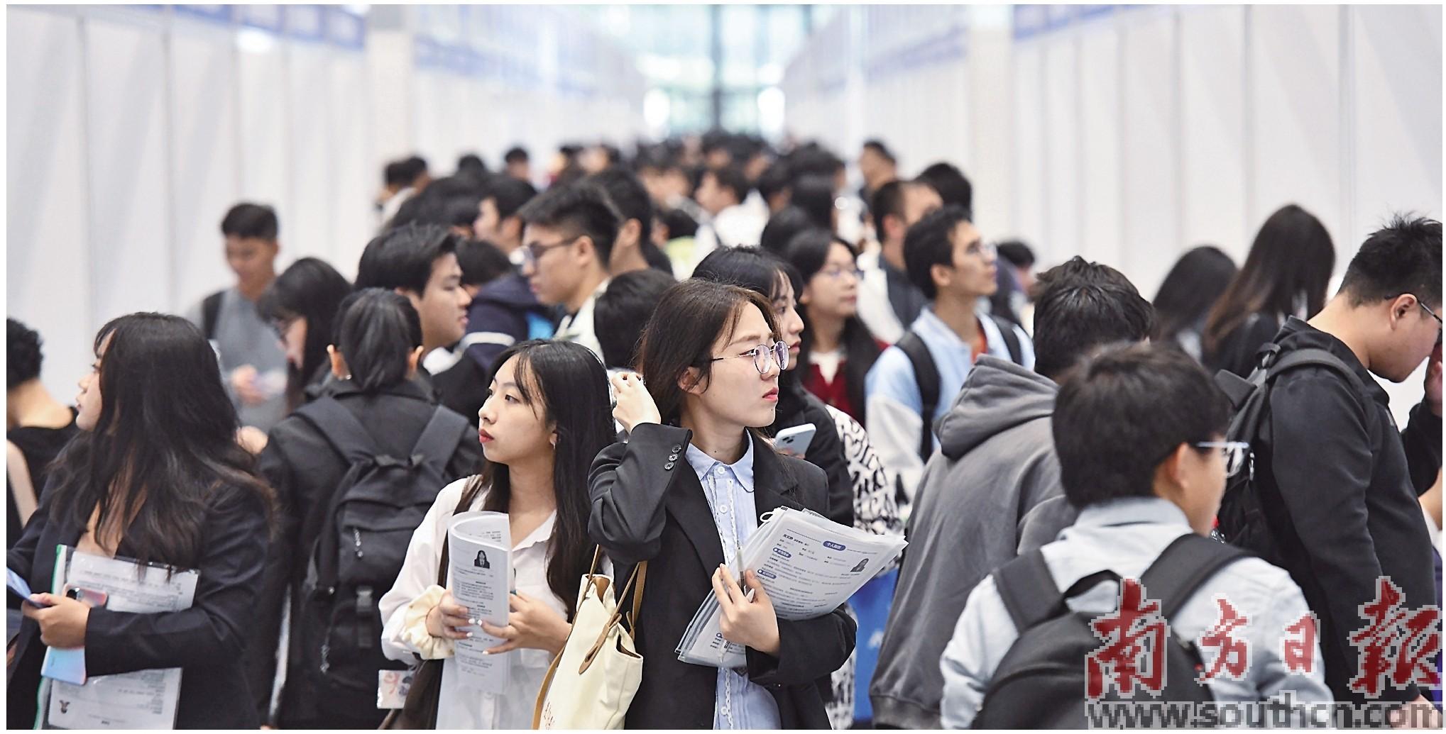2023年,广东坚持就业优先导向托举起群众幸福生活。图为2023年粤港澳大湾区人才专场招聘会暨第27届全国高校毕业生秋季就业双选会同步举办,提供约5万个岗位。新华社发