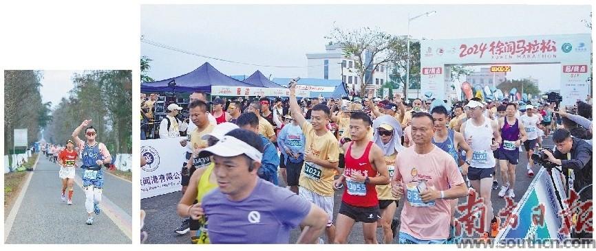 徐马,是今年广东首个“村马”,在争相启动的城市马拉松中独树一帜。全长42.195公里的徐闻马拉松赛道,犹如一幅亚热带生态农业画卷。对于跑友来说,这是一场速度与激情的较量,也是一场七彩田园之旅。全马冠军陈华威说,这次马拉松与之前跑过的城市马拉松不一样,上下坡多,整体赛道难度高,更有挑战性,观众的加油打气也激励自己不断向前。