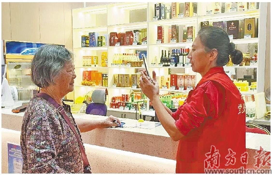 长者到古镇镇香山长者饭堂就餐,志愿者通过刷脸确认其优惠类型。