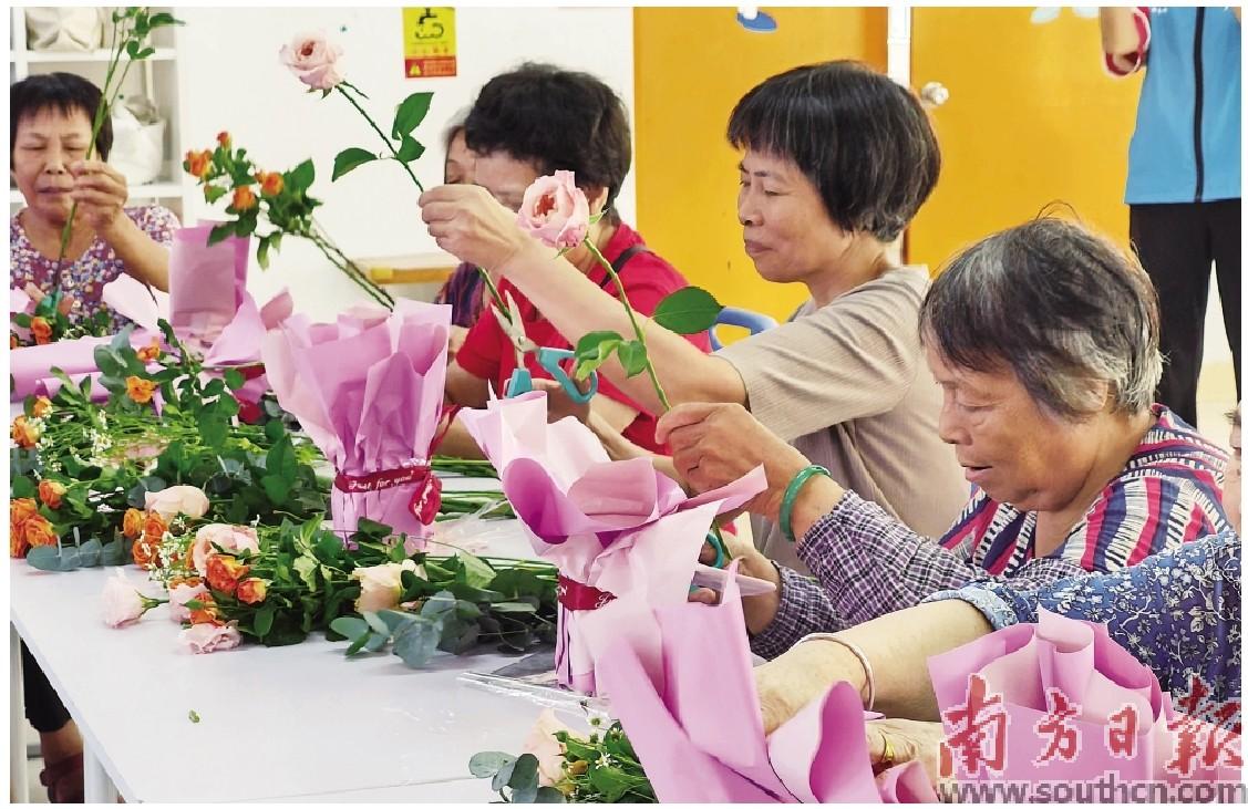 长者们在南头镇综合养老服务中心参加插花艺术课。通讯员供图