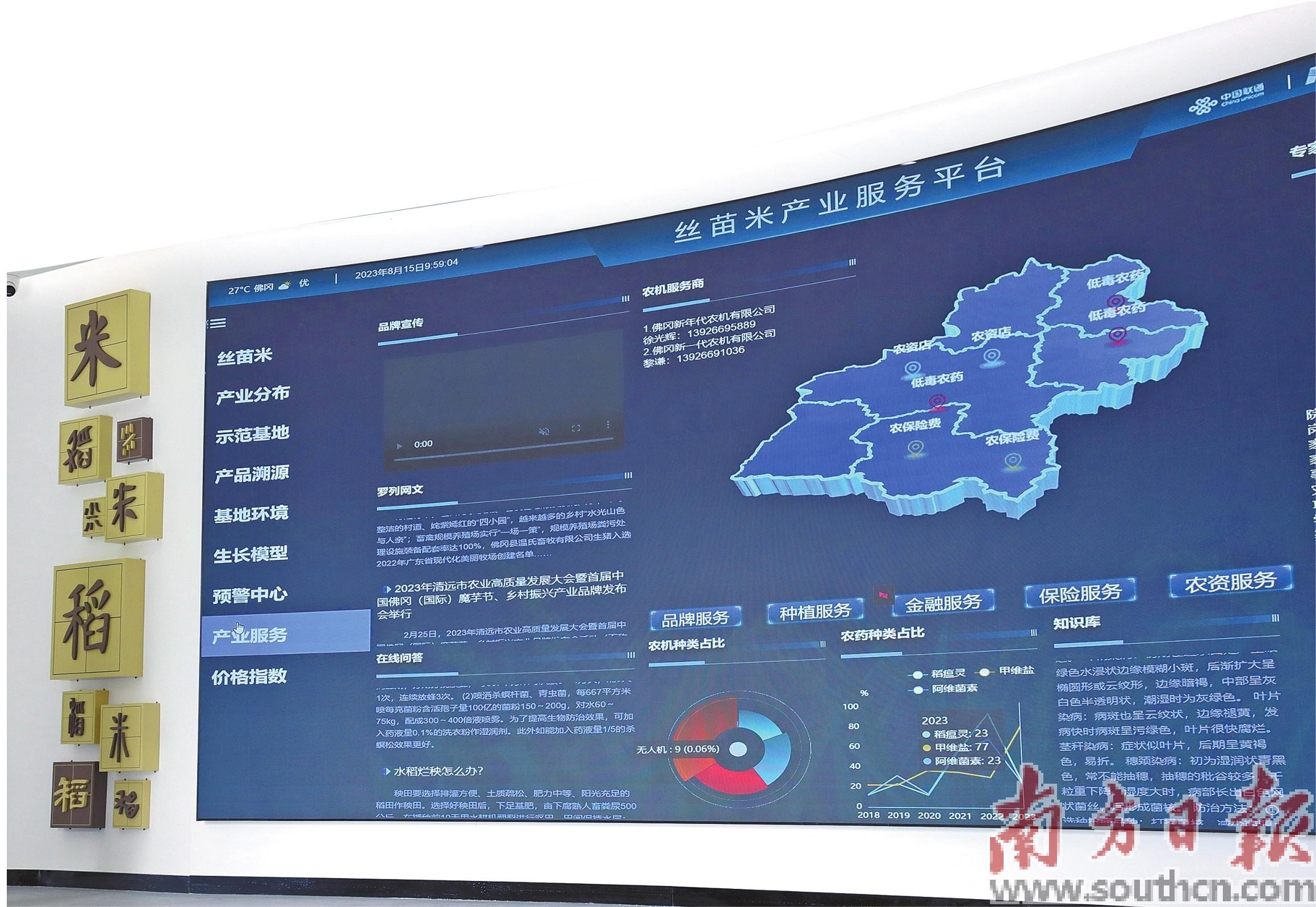 位于迳头镇的佛冈县丝苗米数字展示中心,丝苗米产业“一张图”清晰明了展示出全县丝苗米各项情况,这是全市首个丝苗米数字化平台。数字化基地整合了全县丝苗米产业分布情况并进行了可视化呈现,可以在“一张图”上看到整个佛冈的丝苗米种植、加工、品种等情况,对产业发展做到心中有数。