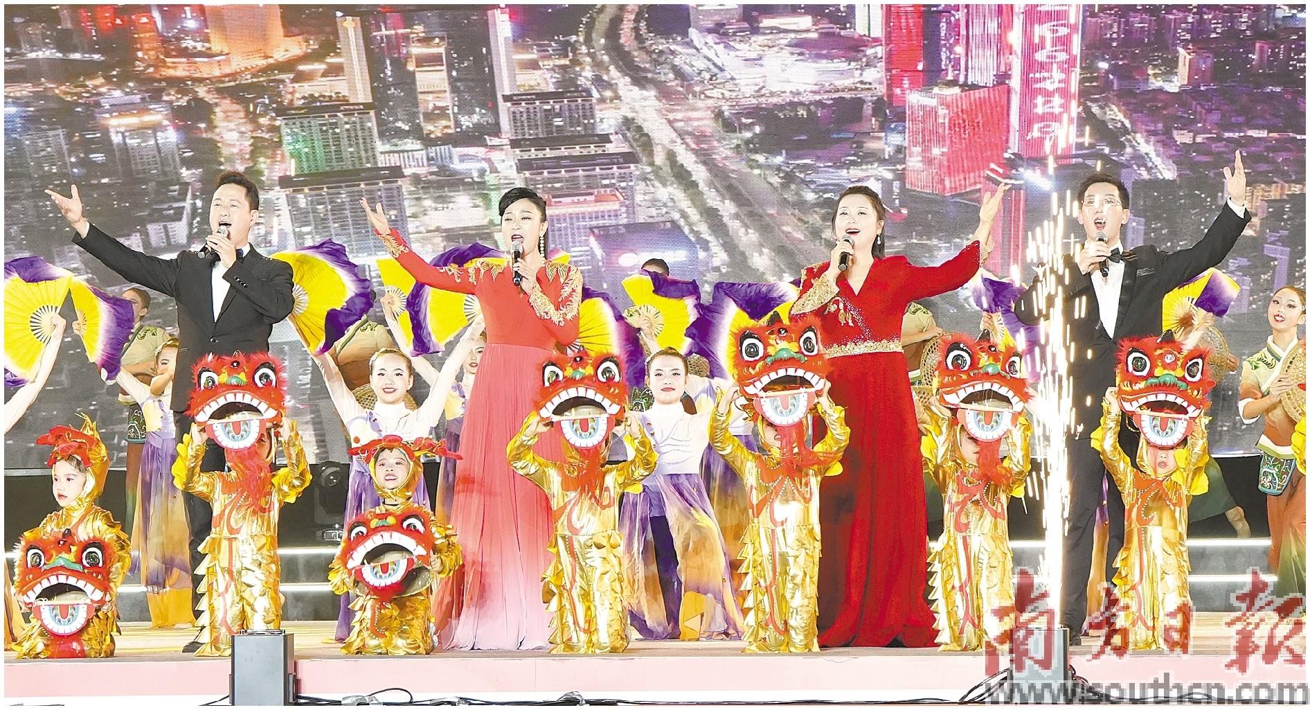 “我要上村晚”2024年东莞市百村迎春联欢晚会开幕。图为开篇节目大型歌舞《走向小康路》。南方日报记者 仇敏业 摄