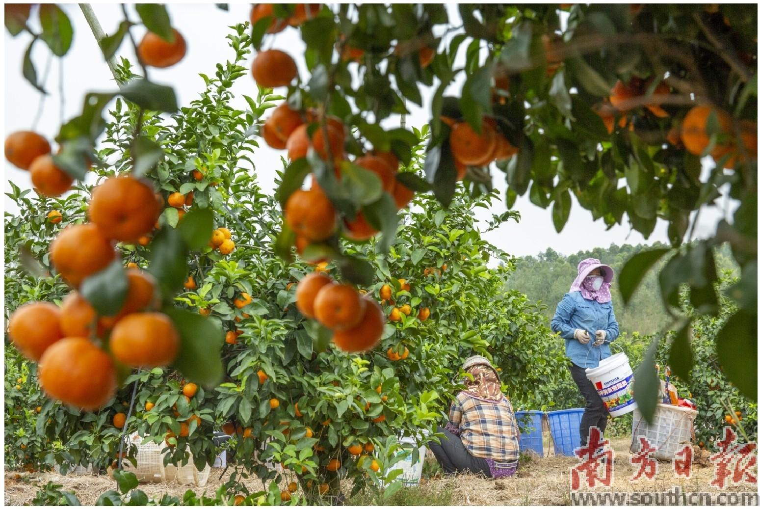 果园里一簇簇金黄的砂糖橘挂满枝头。