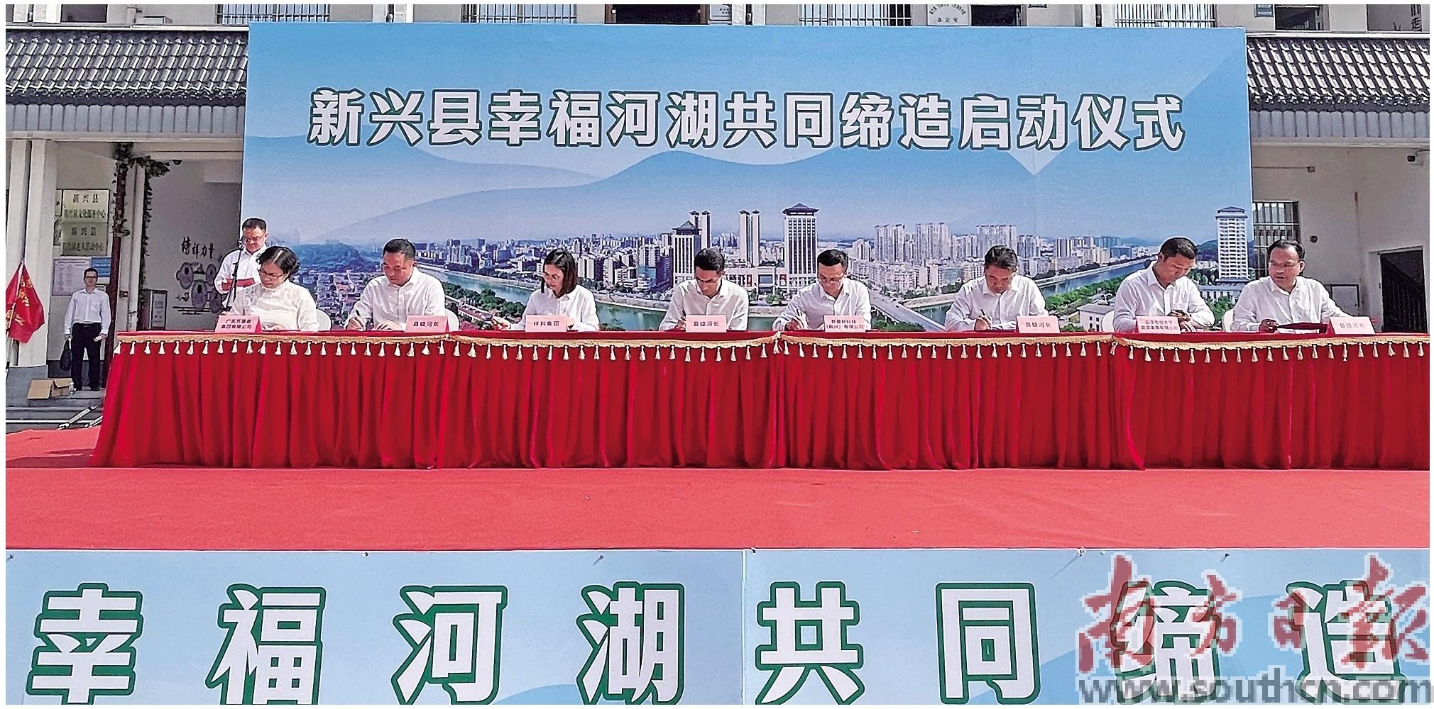 新兴县“幸福河湖·共同缔造”启动仪式在簕竹镇举行。图为签署认养协议现场。梁桂婵 摄